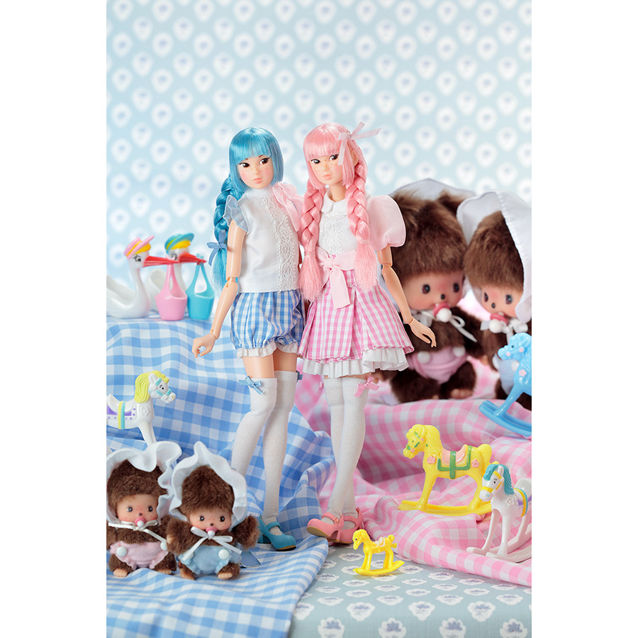 [ドール]ティーンボディ、ナチュラル肌、ライトブルーの三つ編み1本、左向き目、上マツゲ2本、アイシャドウスキンベージュ、瞳ブラウン、そばかす、にっこりリップアプリコットピンク